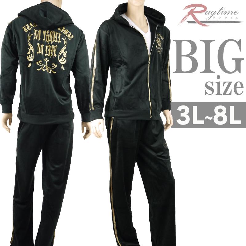 BIGサイズ セットアップ メンズ 大きいサイズ ベロア スウェット 上下 秋 冬 1158-C290919-08