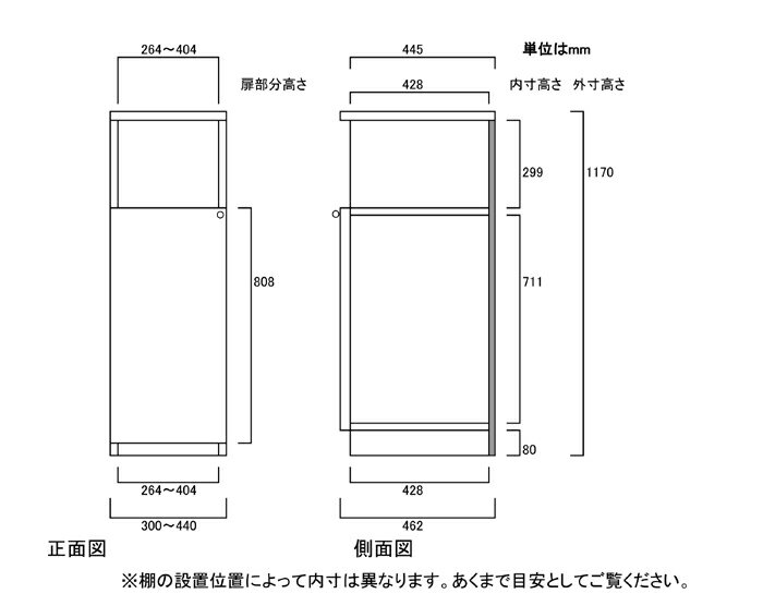扉付壁収納高さ117cm幅30〜44cm奥行46cm厚棚板(耐荷重30Kg)片開き 扉高さ80.8cm 扉付客間シェルフ 壁収納