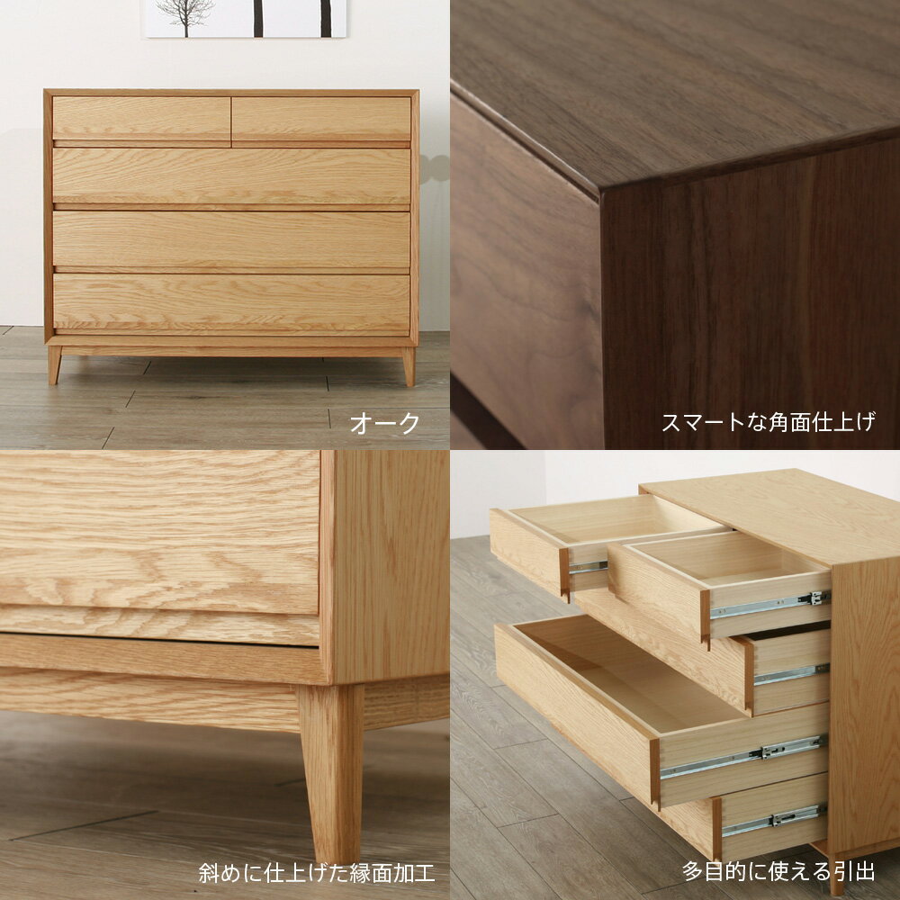 主な特徴 天然木のやさしさが伝わるナチュラルデザイン 天然木の無垢材とツキ板で作り上げた素材感の美しいチェスト。